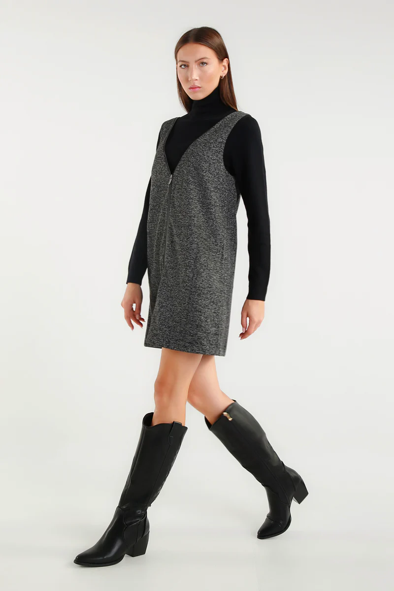 Abito smanicato in tessuto tweed grigio mélange