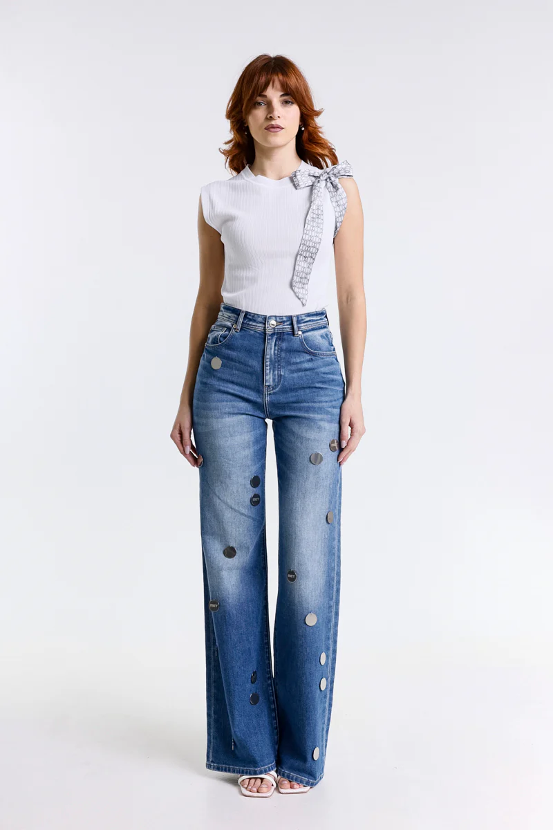 JEANS WIDE LEG VITA ALTA CHIARO