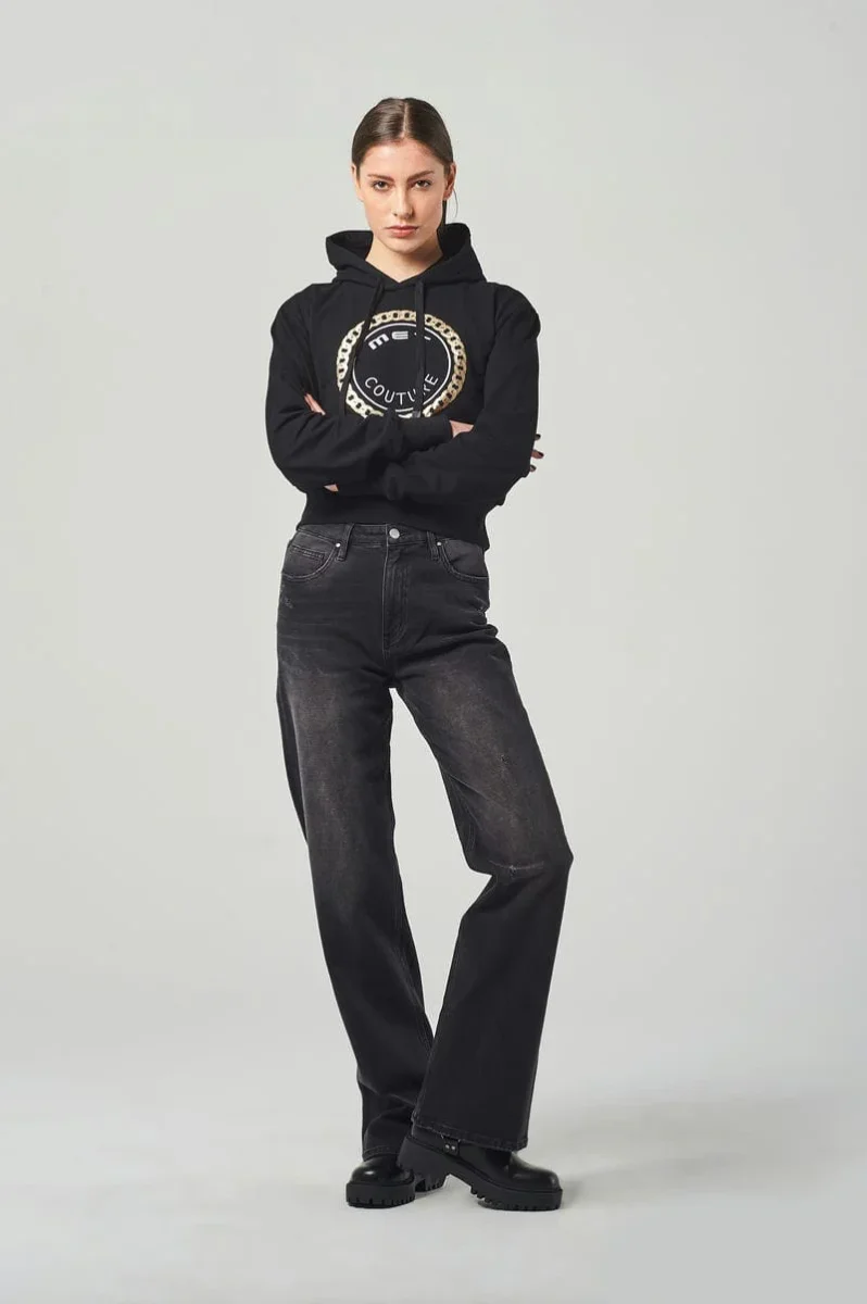 Jeans Wide Leg Nero a Vita Regolare