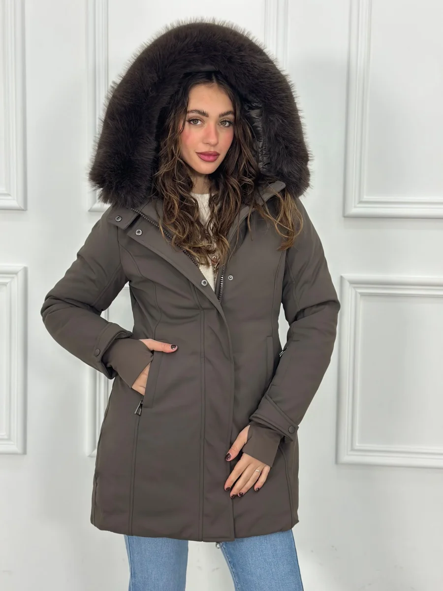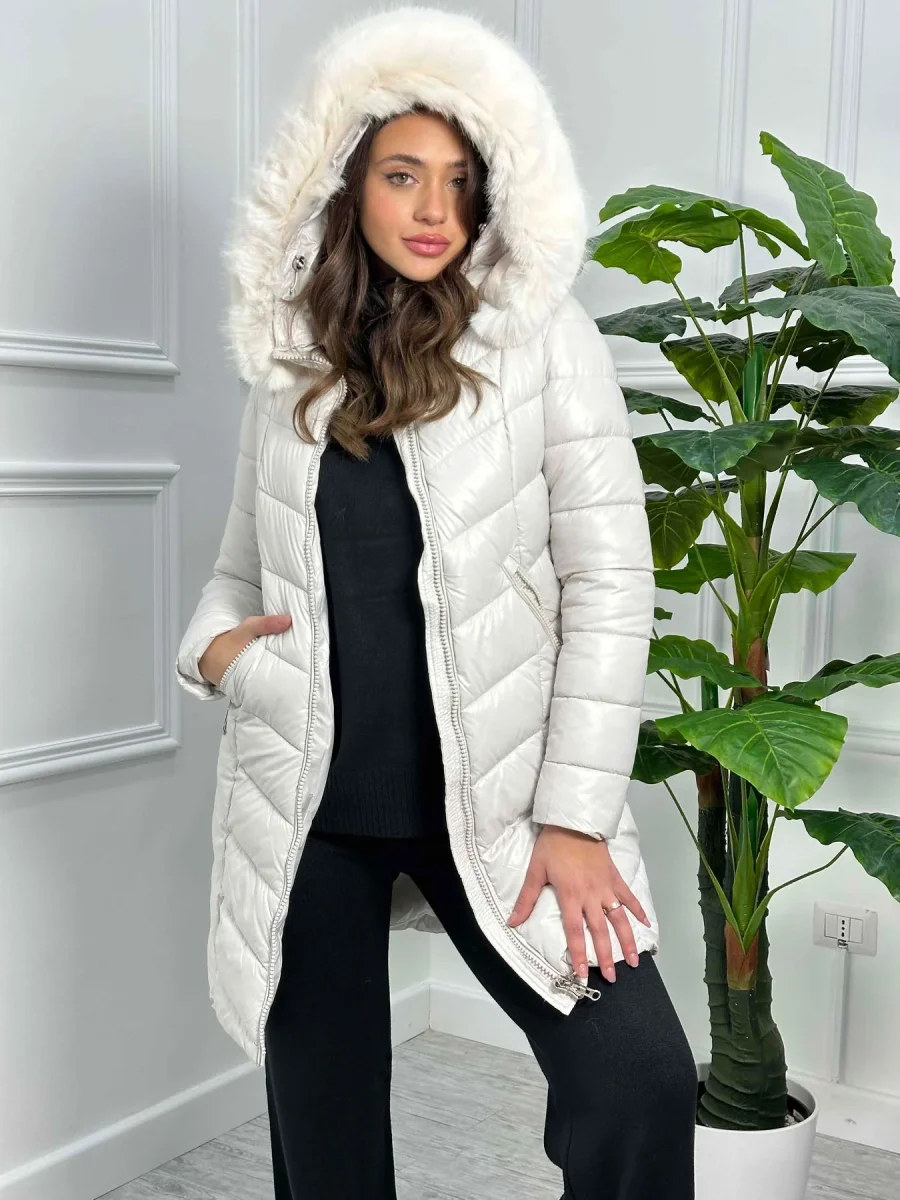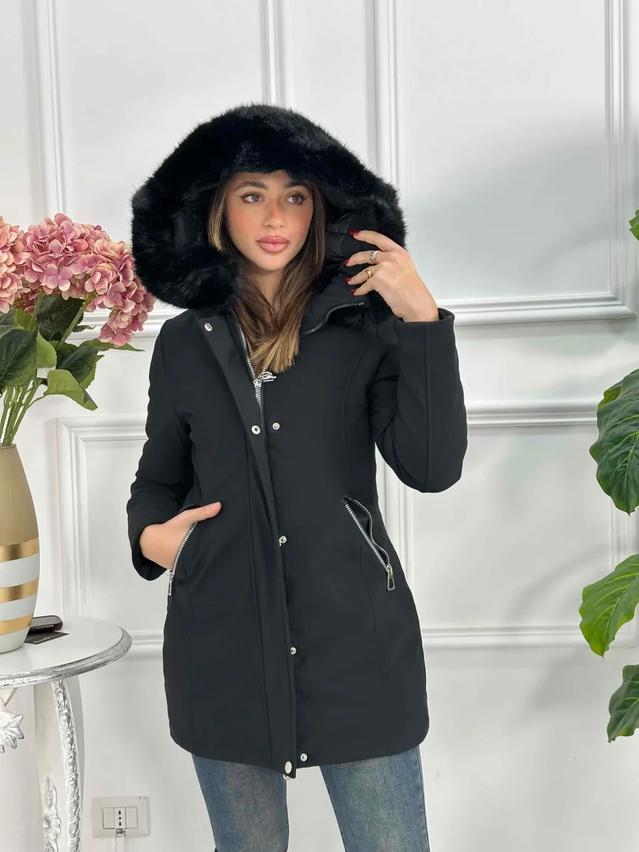 Giubbotto lungo con cappuccio e pelliccia ecofour removibile MB0252