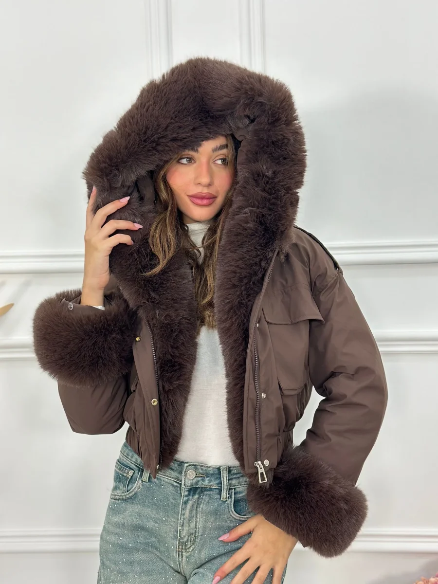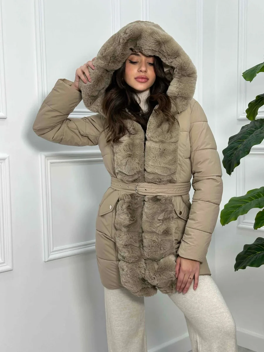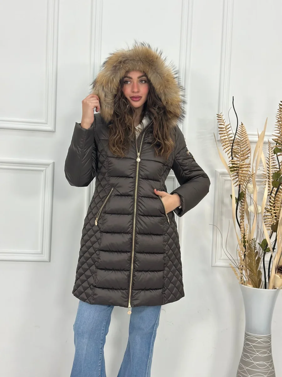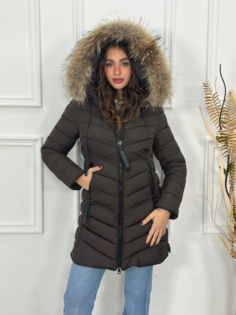 Giubbotto lungo con cappuccio e pelliccia ecofour removibile MB0252