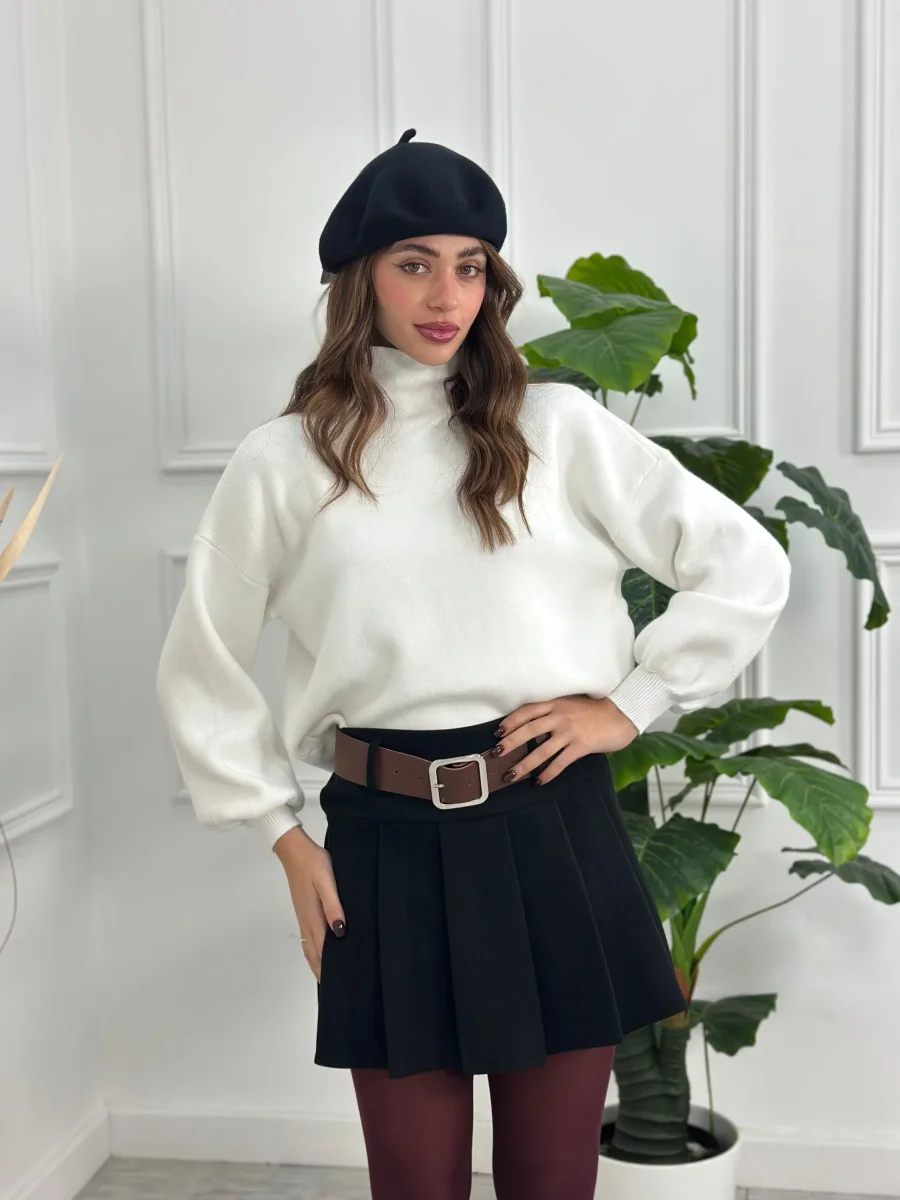 Gonna corta in lana con cinturino EXL66919