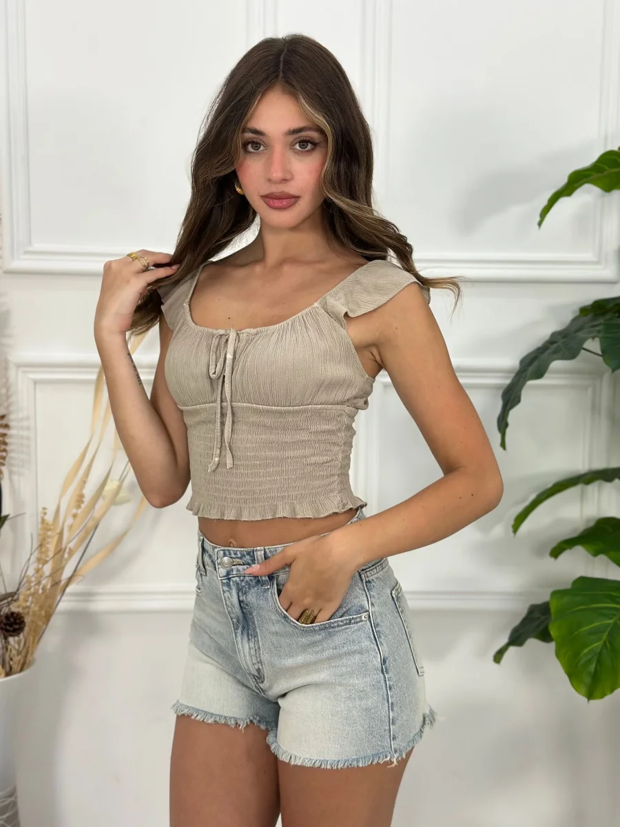 Bermuda con pence ed elastico in vita misto lino ARG5736